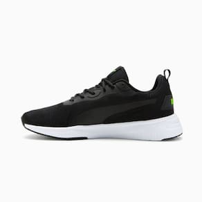 O tênis Flyer Flex expande a bem-sucedido tênis Flyer Runner e traz um estilo totalmente novo ao espaço de flexibilidade da PUMA. O ferramental apresenta uma nova silhueta ousada, com ranhuras flexíveis em toda a extensão do produto. A cobertura de borracha no calcanhar e na biqueira proporciona durabilidade e tração da sola. A parte superior apresenta a marca Formstrip com contorno impresso, além de sobreposições de calcanhar e ilhós. Uma ousada marca PUMA no calcanhar completa o interessante design.