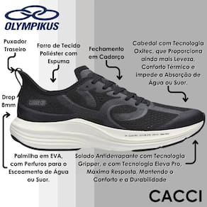 -OXITEC: Tecnologia localizada no cabedal, com uma nova composição de fios, integrando monofilamento, poliéster e elastano. Proporciona ainda mais leveza, conforto térmico e impede a absorção de água ou suor.