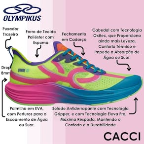 -OXITEC: Tecnologia localizada no cabedal, com uma nova composição de fios, integrando monofilamento, poliéster e elastano. Proporciona ainda mais leveza, conforto térmico e impede a absorção de água ou suor.