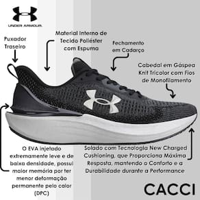 Seu cabedal é todo confeccionado em gáspea knit tricolor com fios de monofilamento, com aberturas distribuídas de forma inteligente proporcionando mais estrutura e respirabilidade, além de flexibilidade e leveza.