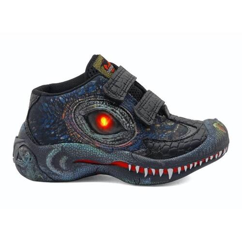 Tênis Menino Vissi L124 LedTênis Dinossauro Infantil Luz Led Personagem O diferencial dos tênis DINOPARK é o visual, que imita a pela, as patas, os olhos e os dentes dos dinossauros, além da diversão que o mundo jurássico pode proporcional a cada pegada.Nesse modelo do DINOPARK, os dentes, os olhos e as cores no solado são totalmente customizados e pintados a mão com tinta atóxica.Solte a imaginação e chame o papai ou a mamãe para ajudar nos retoques do solado! Inspire-se no mundo jurássico e mude as cores das pinturas de seu DINOPARK.
