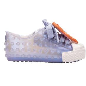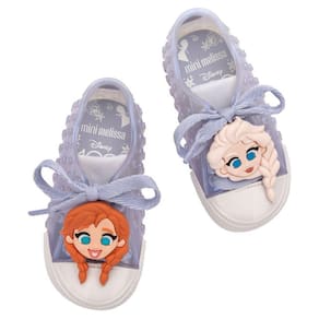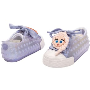 O Tênis Mini Melissa Polibolha Disney é um modelo confortável e com aquele cheirinho e maciez que só uma Melissa pode oferecer. Ideal para utilizar em um passeio no parque, uma festinha ou até mesmo para o dia a dia, na cor branca metalizada com um toque de lilás, esse tênis para meninas possui polibolhas espalhadas e dois apliques no cadarço que podem ser removidos e colocados no cadarço de qualquer outro tênis da criança. Um deles é a Elsa e o outro aplique é a Anna, ambas do filme Frozen da Disney.