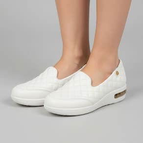 O tênis slip on da Modare é perfeito para quem busca conforto e estilo no dia a dia. Ele tem um design moderno e elegante, com detalhe matelado na parte superior e cor branca que combina com tudo. O material napa é macio e resistente, e o solado tem amortecedor em gel que absorve os impactos e protege os pés. O tênis slip on da Modare é fácil de calçar e se adapta ao formato do seu pé, garantindo uma sensação de bem-estar a cada passo.
