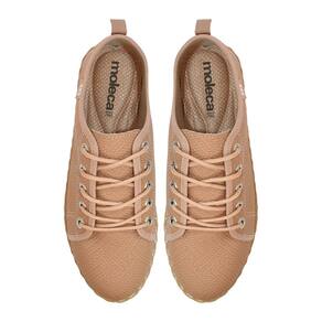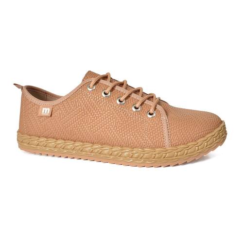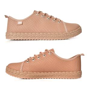 O Tênis Moleca Casual Feminino Solado Trançado Nude, confeccionado com material de alta qualidade, palmilha macia, solado emborrachado com entressola imitando corda tramada e fechamento por cadarço. Um modelo prático e versátil que é utilizado no dia a dia com vestido, saias e shorts em diversas ocasiões.