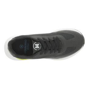 O cabedal é feito em tecido super respirável, com detalhes em material sintético. A entressola é mais alta no calcanhar, o que ajuda no conforto durante o uso, além do solado emborrachado com frisos antiderrapantes. Possui fechamento em cadarço para melhor ajuste.