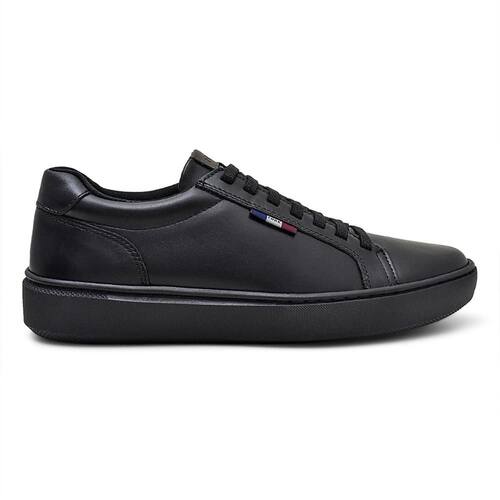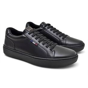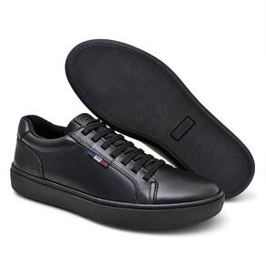 Tênis New Black Masculino Couro Cadarço Casual - 39 - Preto