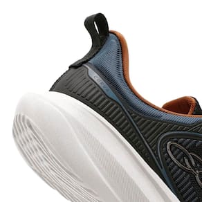 A palmilha em EVA oferece um ajuste anatômico e maior respirabilidade, enquanto o cabedal com tecnologia Hypersox molda-se ao pé como uma meia, proporcionando encaixe confortável, flexibilidade e leveza.