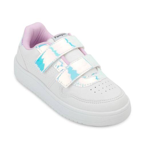 Nome: Tênis Pampili Infantil PP23-48700. Gênero: Menina. Indicado Para: Moda-Dia a Dia. Ocasião: Casual. Material Externo: Alternativo. Material Interno: Têxtil acolchoado. Fechamento: Fixadores aderentes com detalhes holográficos. Palmilha: Forrada, macia e removível. Solado: Borracha antiderrapante. Peso do Produto: 599 g (o peso varia de acordo com a numeração). Garantia do Fabricante: Contra defeito de fabricação. Origem: Nacional. Código Produto: 04024022. Marca: Pampili. Ean: 7890097943983