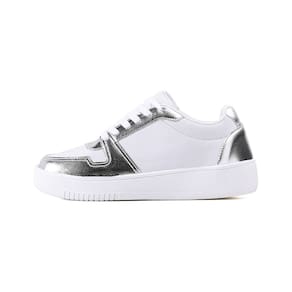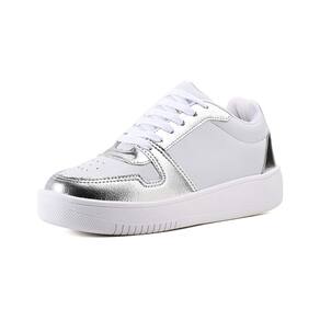 Tênis confeccionado com material sintético na cor branco com detalhes em material sintético metalizado e palmilha confort. Ideal para quem busca usar no dia a dia um calçado confortável e estiloso.