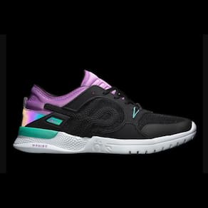 A tecnologia PHIBO, inspirada pela sequência de Fibonacci, proporciona uma estrutura leve e que oferece a melhor distribuição de peso possível. Em cor preta com detalhes em tons de roxo e verde, em material de tecido.