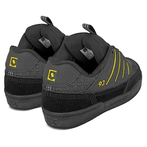 Cabedal em material sintético resistente: Acabamento em preto com detalhes amarelos que valorizam o design.