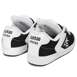 Cabedal: Em camurça com recortes laterais em couro sintético, logo bordado clássico de Chorão na lateral e a inscrição “Chorão Eterno” no calcanhar, além da logo marca Qix Skate garantindo durabilidade e autenticidade.