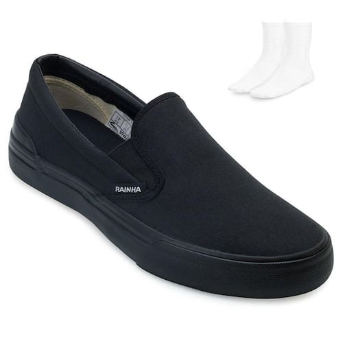 Nome: Tênis Rainha Iate II e Meia RN21. Gênero: Masculino. Indicado para: Dia a Dia. Estilo da Peça: Casual esportivo. Cabedal: Lona com detalhe em borracha atrás. Material Interno: Têxtil. Ajustes: Elásticos laterais. Palmilha: EVA forrada e removível. Solado: Borracha antiderrapante. Tipo de pisada: Neutra. Peso do Produto: 828 g (o peso varia de acordo com a numeração). Garantia do Fabricante: Contra defeito de fabricação. Origem: Nacional. Código Produto: 01023879.