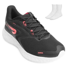 Nome: Tênis Rainha Play III e Meia RA24. Gênero: Masculino. Indicado Para: Dia a Dia - Caminhada. Ocasião: Casual. Material Externo: Têxtil. Material Interno: Têxtil. Fechamento: Cadarço. Palmilha: EVA forrada e macia. Solado: EVA antiderrapante. Peso do Produto: 741 g. (o peso varia de acordo com a numeração). Garantia do Fabricante: Contra defeito de fabricação. Origem: Nacional. Código Produto: 01024695. Marca: Rainha. Acompanha um par de meias tamanho 37 ao 43. Composição: 83% Algodão. 12% Poliamida. 05% Elastodieno.