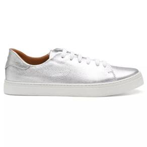 Tênis Sapatenis Couro Moda Casual Feminino Metalizado Cadarço Sola Macia Costura Reforçada Dia a Dia - 37 - Prata