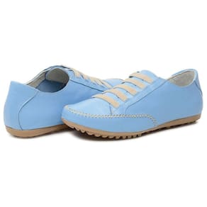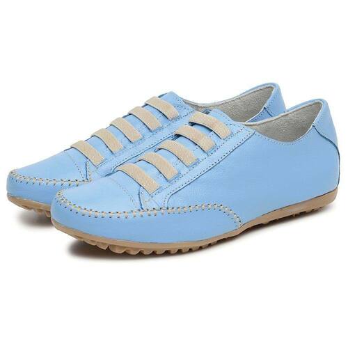 Tenis Sapatilha Feminina Couro Conforto Palmilha EVA Macia Solado Borracha Com Cadarço Cano Curto - 42 - Azul Petróleo