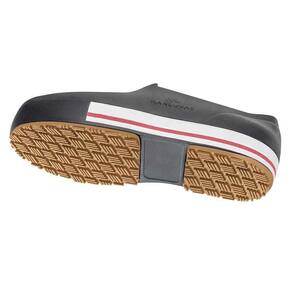 Sapato ocupacional impermeável, confeccionado em EVA, fita polimérica na tarela do calçado e solado antiderrapante.