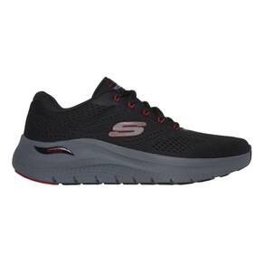 O Tênis Skechers Arch Fit Masculino para caminhada e corrida, possui cabedal em mesh respirável e sintético, oferecendo leveza e ventilação; é fabricado em material têxtil com sobreposições sintéticas para reforço. A biqueira é reforçada para proteção extra. O fechamento é feito por atacadores tradicionais para ajuste seguro. A lingueta é integrada ao cabedal e o colarinho é acolchoado para maior conforto. A palmilha Air Cooled Memory Foam proporciona maciez e respirabilidade; a calcanheira é reforçada para suporte adicional. O forro interior é têxtil macio. O solado é em borracha de alta tração, com entressola de EVA leve e amortecimento responsivo Resalyte, oferecendo ótimo grip e absorção de impacto. Possui puxador traseiro para facilitar o calce. Estilo esportivo casual, design moderno em preto com detalhes vermelhos. Detalhe: logo Skechers na lateral.