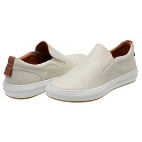 Tenis Slip On Couro Casual Calce Facil Palmilha Gel Anti-Impacto Solado Borracha Macio - 41 - Bege Claro