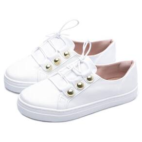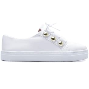 Material: Napa Branco Enfeite: Cadarco Branco e Botoes ABS (passante) na cor Dourado Palmilha: 4 mm de Espessura na cor Bege Forro: Cacharrel, material espumado para maior conforto, na cor Bege Salto / Solado: 3 cm de Altura, P.V.C Flexivel, antiderrapante, na cor branco.