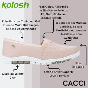 Com a funcionalidade que os dias mais agitados pedem, a sapatilha esportiva, como também é conhecido o Tênis Kolosh Casual, vem cheia de atributos: de calce fácil, o calçado recebe aplicação de elástico no peito do pé, garantindo um encaixe perfeito. O cabedal clean recebe microfuros na parte frontal do modelo, que além de delicadeza ainda permite melhor transpiração do pé dentro do calçado. Já a sola em TR bicolor levemente dentada,