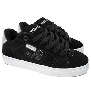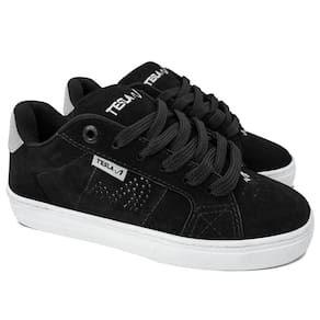 Hertz: O tênis Hertz da Tesla Footwear é um modelo inspirado nos tênis clássicos dos anos 2000, com um estilo "OLD" e referências ao verdadeiro tênis de skate. Ele é conhecido por seu bico curto e largo no pé, bem acolchoado, leve e confortável. O Hertz é revestido de camurça de alta resistência para evitar desgaste rápido ao entrar em contato com a lixa do skate.
