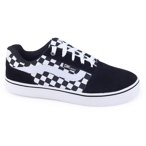 O modelo DK Shoes VS13 é um tênis desenhado para quem curte esportes como skate, ou um estilo casual Streetwear urbano. Seu cabedal é em material têxtil nobuck, é forrado internamente para maior conforto. Seu fechamento é em cadarço reto e sua palmilha em EVA removível, revestida em material têxtil apresentando a logo da marca. O solado é reto, perfeito para quem anda de skate, fabricado em material sintético com 2,5cm de altura, possui frisos para maior segurança.