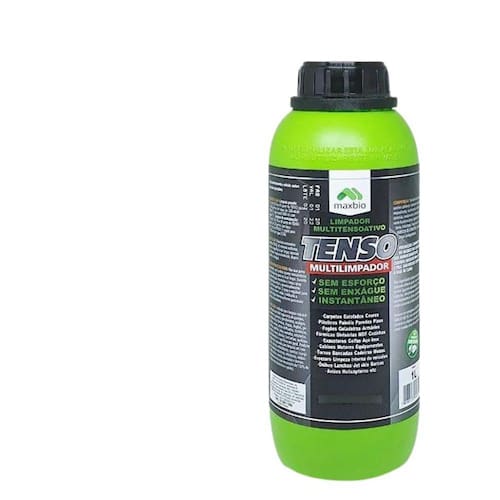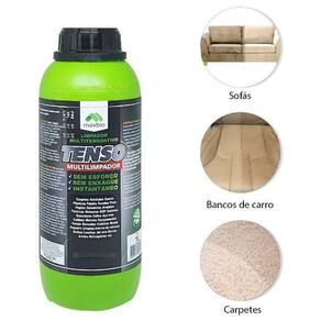 Tenso limpador estofados sófa banco de carro tesoativo 1 litro Tenso é multilimpador indicado para limpeza sob pulverização e sem enxague para todos os tipos de estofados. É eficiente através de simples pulverização como manutenção doméstica e quando aplicado com máquina extratora, traz resultado surpreendente como produto profissional.Sem esforçoSem enxágueInstantâneo Disponível em embalagens de 500ml pronto para uso , 1 litro e 5 litros concentrado para diluição Indicado para: carpetes estofados couros plásticos painéis paredes pisos fogões geladeiras armários fórmicas divisórias mdf cozinhas exaustores coifas aço inox cabines motores equipamentos tornos bancadas cadeiras mesas freezers limpeza interna de veículos ônibus lanchas jet skis barcos aviões helicópterosAplicação:Pulverizar economicamente tenso, de maneira uniforme, sobre a superfície a ser limpa; remover com pano limpo e umedecido, dispensando o enxágue. Limpeza pesada: 1:1 até 1:5 diluir 01 parte de tenso para 1 até 5 partes com água. Ex: 200 ml de tenso 1 copo para 1.000 ml com água 1:5 . Limpeza de manutenção: 1:5 até 1:20 diluir 01 parte de tenso para 5 até 20 partes com água.Ex.: 50 ml de tenso copo para 1.000 ml com água 1:20 . Recomendações úteis:Não usar pano encardido, pois poderá ocorrer transferência de resíduos do pano no local limpo. Durante a pulverização, mantenha o frasco spray na posição vertical aproximadamente 15 cm da superfície. O spray é regulável para maior ou menor vazão, é indicada a pulverização mínima uniforme para maior eficácia do produto. Informações importantesPrecauções:Conserve fora do alcance de crianças e dos animais domésticos.Não ingerir. Evite inalação ou aspiração, contato com os olhos e contato com a pele. Em caso de contato com a pele e olhos, lave imediatamente com água em abundância.Em caso de ingestão, não provocar vômitos, consultar imediatamente o centro de intoxicações ou médico, levando o rótulo do produto.