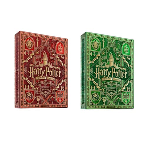 A embalagem externa é simplesmente mágica. Folha de ouro opulenta e ornamentada. Maravilhosos detalhes em folhas de cores da casa. Alívio preciso e ultra-detalhado. Uma caixa luxuosa ao toque e à vista de todos os ângulos. As cartas de baralho de Harry Potter são a homenagem perfeita ao Mundo Mágico. Da Pedra Filosofal às Relíquias da Morte, continue e experimente a história e seus momentos icônicos sempre que você os tiver em suas mãos. Este conjunto inclui os decks Gryffindor e Slytherin da melhor qualidade.