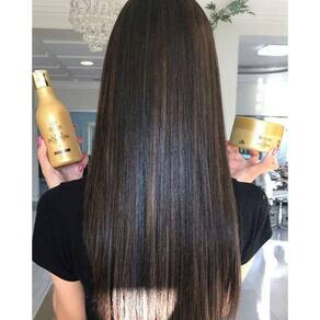 Mascara banho de ouro line golden cabelos mais sedosos, macios e brilhantes.