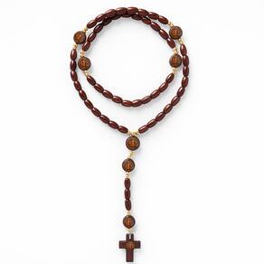 Terço Madeira São Bento Conta 8mm 45 cm Marrom