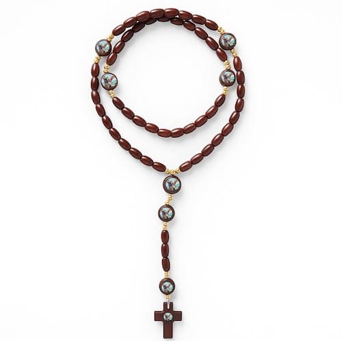 Terço Madeira São Miguel Arcanjo Conta 8Mm 45 Cm Marrom