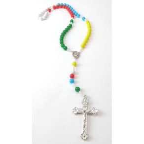 Terço Missionário confeccionado manualmente com pedras acrílicas de 8mm nas cores branco, amarelo, verde, vermelho e azul