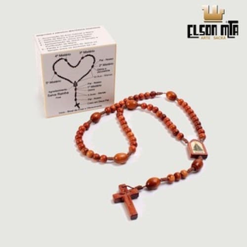 Terço Nossa Senhora Aparecida com Porta-Terço e os quatro Mistérios. Construído em madeira, com fio de poliéster encerado, contas de 8 mm e 6 mm e cruz entalhada Tamanho do terço: comprimento 31 cm Tamanho do porta-terço: altura 4 cm; lado x lado 6,5 cm Acabamento mogno envernizado, com alto brilho e impermeabilidade Importante: O porta-terço contém instruções sobre a forma correta de se rezar o terço. Cada lado do porta-terço possui os Mistérios do respectivo dia da semana. Marca: Elson MTA - Arte Sacra