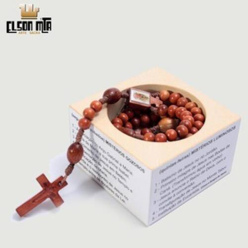 Terço Nossa Senhora de Guadalupe com Porta-Terço e os quatro Mistérios. Construído em madeira, com fio de poliéster encerado, contas de 8 mm e 6 mm e cruz entalhada Tamanho do terço: comprimento 31 cm Tamanho do porta-terço: altura 4 cm; lado x lado 6,5 cm Acabamento mogno envernizado, com alto brilho e impermeabilidade Importante: O porta-terço contém instruções sobre a forma correta de se rezar o terço. Cada lado do porta-terço possui os Mistérios do respectivo dia da semana. Marca: Elson MTA - Arte Sacra