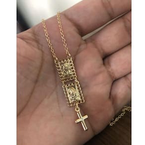 Terço Colar Sagrado Coração de Jesus E Nossa Senhora Do Carmo Banhado A Ouro 18k 60cm Oferece um padrão superior de qualidade com um banho de 10 camadas de ouro que atrelados ao verniz antialérgico e ao acabamento de joalheria, garantindo maior qualidade e durabilidade para a sua joia Terço Colar Sagrado Coração de Jesus E Nossa Senhora Do Carmo Banhado A Ouro 18k 60cmTamanho De comprimento: 60cmPeso: 4,9gComprimento x Largura dos Pingentes : 5cm x 1cmBanho de Camadas: 10 banhos de camadasVerniz: Potencializado Cuidado com suas peças:Guarde em local seco, Evite contato com: água do mar, perfumes, cosméticos, spray fixador e produtos químicos em Limpe com tecido macio e guarde-os sempre após o uso, Assim você estará preservando a qualidade de seu acessório. Marca: Loja Mm