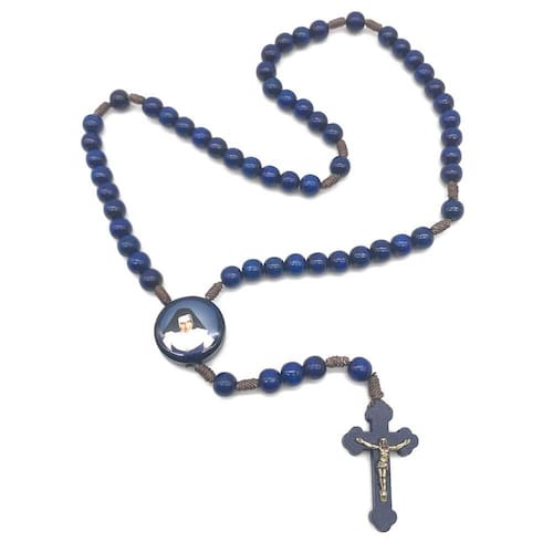 Terço Santa Irmã Dulce dos Pobres Madeira Azul 8 mm