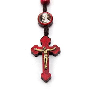 Terço Santa Terezinha Madeira 8mm Vermelho Santa Teresinha do Menino Jesus e da Sagrada Face, nascida em Alençon França , também é venerada e representada como a Santa das Rosas. Material: Madeira vermelha Contas 8 mm Metal em ouro velho Resina Cordão Tamanho: 41 cm de comprimento Dimensões aproximadas do produto. Marca: Não Informado Ean: 7899347274280