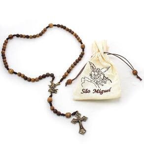 Terço São Miguel Arcanjo Madeira Frisada Saquinho Miguel, Michael ou Micha, é um arcanjo nas doutrinas religiosas cristãs, judaicas e islâmicas. Os católicos, anglicanos, ortodoxos e luteranos se referem a ele como São Miguel Arcanjo ou simplesmente como São Miguel. É percebido como o protetor do povo de Deus, sendo assim, nós que, segundo a Tradição, somos o novo povo de Deus, devemos pedir, constantemente, a sua proteção. daniel 12, 1 Material: Contas em madeira Embuia frisada 7mm e 9/10mm Metais em ouro velho Cordão Tamanho: 40,5 cm de comprimento Dimensões aproximadas do produto. Marca: Não Informado Ean: 7899347251908