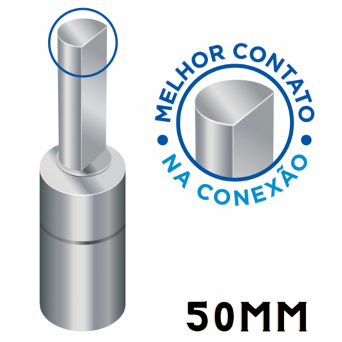A seção transversal maciça evita superaquecimento do terminal quando em condições extremas e confere maior resistência mecânica ao produto.