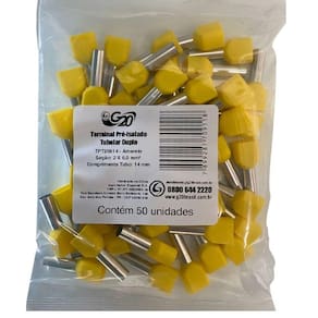 Terminal Pré-Isolado Pino Tubular Duplo 6,0mm² - Amarelo - 50 Unidades - G20