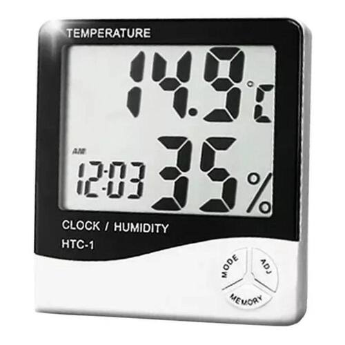 Termo Higrômetro Medidor Temperatura Umidade Relógio Digital