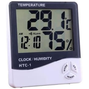 Termo Higrômetro Medidor Temperatura Umidade Relógio Digital Sobre o Produto: - Mostra temperatura, umidade relativa do ar e hora simultaneamente - Memória da temperatura máxima e mínima - Mostra graus ºC ou ºF - 9.9ºc 50ºC - Memória da umidade relativa do ar máxima e mínima 10%-99%RH - Relógio Digital 12/24h - Calendario com dia e mês - Alimentado por 3 pilha AAA Não inclusa - Equipada com visor digital LCD - Dimensões: 9.5 x 10.1 x 2.1 cm - Peso: 100 g Ean: 7900014655483