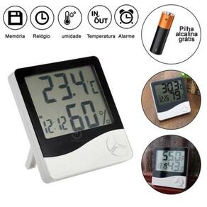 Termo Higrômetro Medidor Temperatura Umidade Relógio Digital Sobre o Produto: - Mostra temperatura, umidade relativa do ar e hora simultaneamente - Memória da temperatura máxima e mínima - Mostra graus ºC ou ºF - 9.9ºc 50ºC - Memória da umidade relativa do ar máxima e mínima 10%-99%RH - Relógio Digital 12/24h - Calendario com dia e mês - Alimentado por 1 pilha AAA não inclusa - Equipada com visor digital LCD - Dimensões: 9.5 x 10.1 x 2.1 cm - Peso: 100 g Marca: Não Informado Ean: 7898165332134