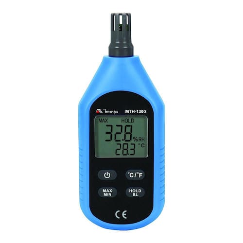 Informações do Produto Termo-HigrÔmetros - MTH-1300 Equipamento voltado para o monitoramento de temperatura e umidade ambiente. Possui sensor interno, leitura máxima e minima, Segurança: EN61326-1, com aplicação na agricultura, pecuária, escritórios, controle ambiental de estoque, laboratório e outros. Informações Técnicas Display LCD/Contagem 4 Digitos/10000 Faixa de Medida 0~100% Sensor Módulo Digital de Temp/Umid Temperatura -10°~60°C/4~140°F Ambiente de Operação 0°C a 40°C (aTé 80% H.R.) 40°C a 50°C (aTé 45% H.R.) Tempo de Resposta 1s Precisão Básica 5% RH/1,0°C/2,0°F Alimentação 3x1,5V AAA Dimensões (mm) 155x50x28 Garantia 12 meses Peso 116g