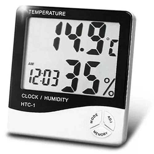 01- Termo-higrômetro Digital Termômetro Higrômetro Relógio Htc1