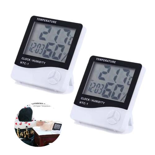 -Faixa de medição de temperatura: -10 °C a +50 °C-Resolução de temperatura: +/- 0,1 °C-Faixa de medição de umidade: 10% a 99% HR-Resolução de umidade: 1% HR-Bateria: um (1) termômetro de higrômetro ambiental AAA 1,5 V-Termômetro de higrômetro ambiental - Este termo-higrômetro é uma maneira fácil de ler e rastrear temperatura e umidade. -Permite exibir a temperatura e a umidade com uma tela grande e fácil de ler. -Pode ser fixado na parede ou colocado na função de relógio de mesa e calendário (mês e dia).
