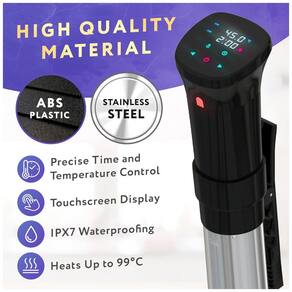 FÁCIL DE USAR E CONTROLE COMPLETO DA TELA DE TOQUE O fogão sous vide APQ facilita muito a alimentação saudável. Conecte a energia e ajuste a temperatura. O fogão sous vide APQ 1100w não tem problemas com WIFI, Bluetooth, testado pelo . Botão simples, operação de um botão, é simples de usar. Apenas a roda de rolagem para aumentar ou diminuir o número na tela, é fácil de dominar e usar. DESIGN LIMPO As panelas APQ Sous vide têm um design simples com uma tela inclinada para evitar embaçamento no painel de controle. O produto adota um mecanismo de proteção de baixo nível de água. Quando o nível de água estiver abaixo do nível mínimo de água, um alarme será enviado e o trabalho será suspenso. O QUE COZINHAR O cozimento sous vide APQ é o nível perfeito de cozimento para praticamente qualquer alimento de sua escolha. A capacidade de bloquear o sabor e a umidade durante o processo de cozimento resulta em textura e sabor inigualáveis. AQUECIMENTO CIRCULADOR RÁPIDO APQ sous vide aquece a água rapidamente, é mais rápido chegar à temperatura. Este mantém a temperatura uniforme e constante, ajuda a cozinhar os alimentos a uma temperatura específica. E o circulador aprimorado também pode lidar com banhos de água muito maiores para permitir cozinhar mais alimentos de uma só vez Marca: Não Informado