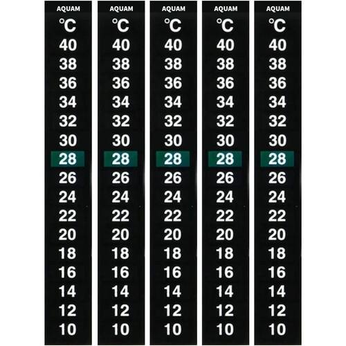 Características do produto: Marca: Aquam Modelo: termômetro adesivo em tira Uso externo Tamanho: 1,8 x 13cm Escala 10 - 40C Fácil leitura Validade: Indeterminada Escala de 2 em 2ºC em grau celsius Uso em aquários Para aquário de água doce ou salgada