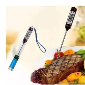 - Este termômetro digital em forma de caneta caracteriza-se em múltiplos usos, baixo consumo de energia, alta estabilidade e precisão, estrutura compacta, operação fácil, é muito conveniente para medir a temperatura de bebidas, como leite e café, alimentos em geral e até mesmo o seu churrasco.